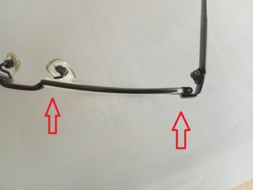 フレームでレンズが隠れているので、ちょっと分かりづらい。なので、今かけているメガネを上から見ると